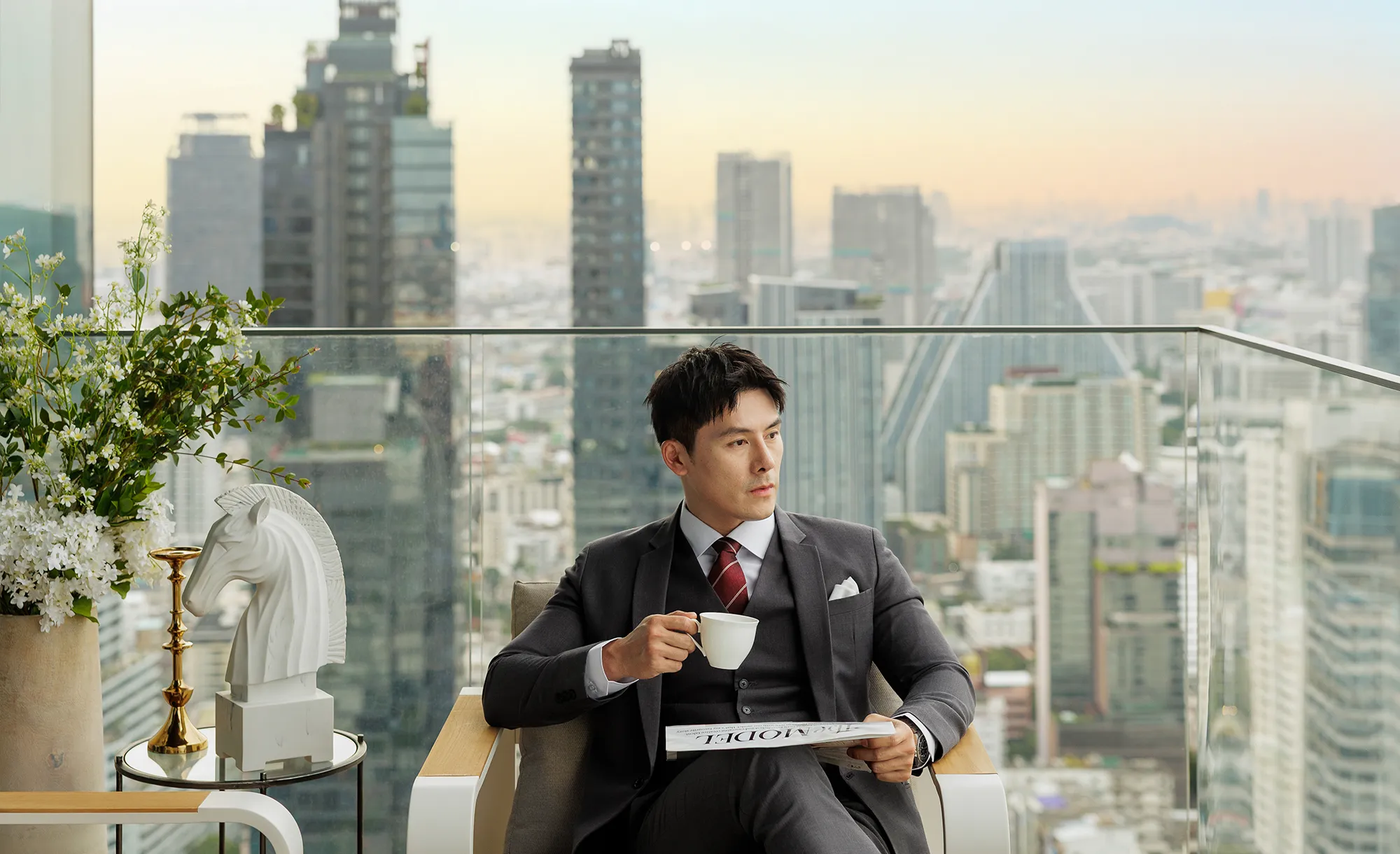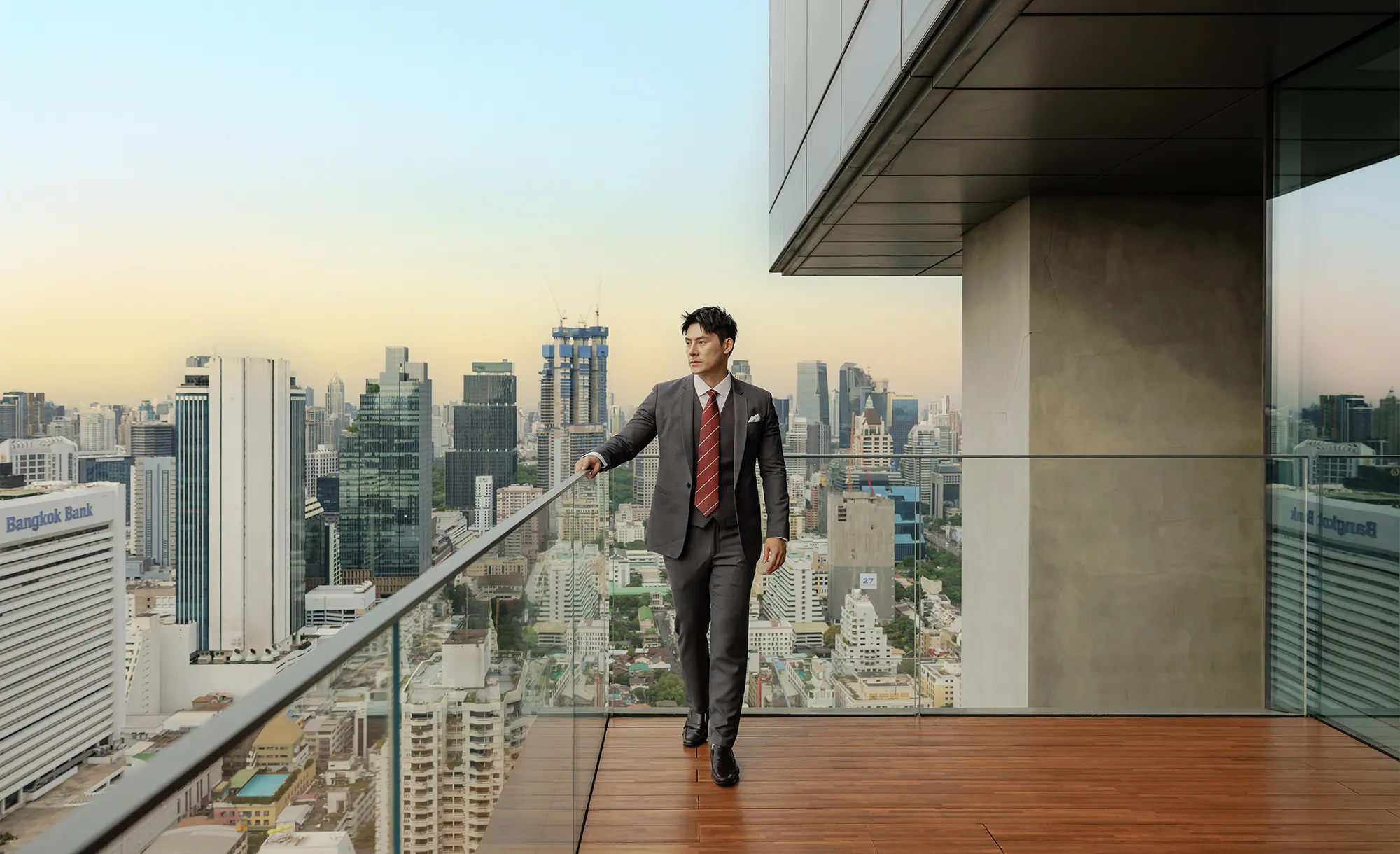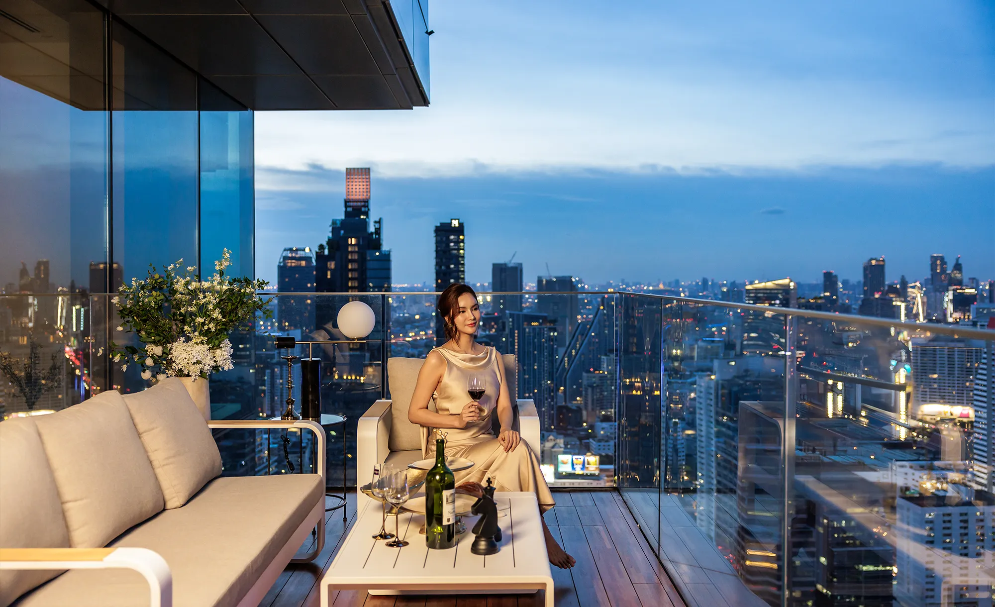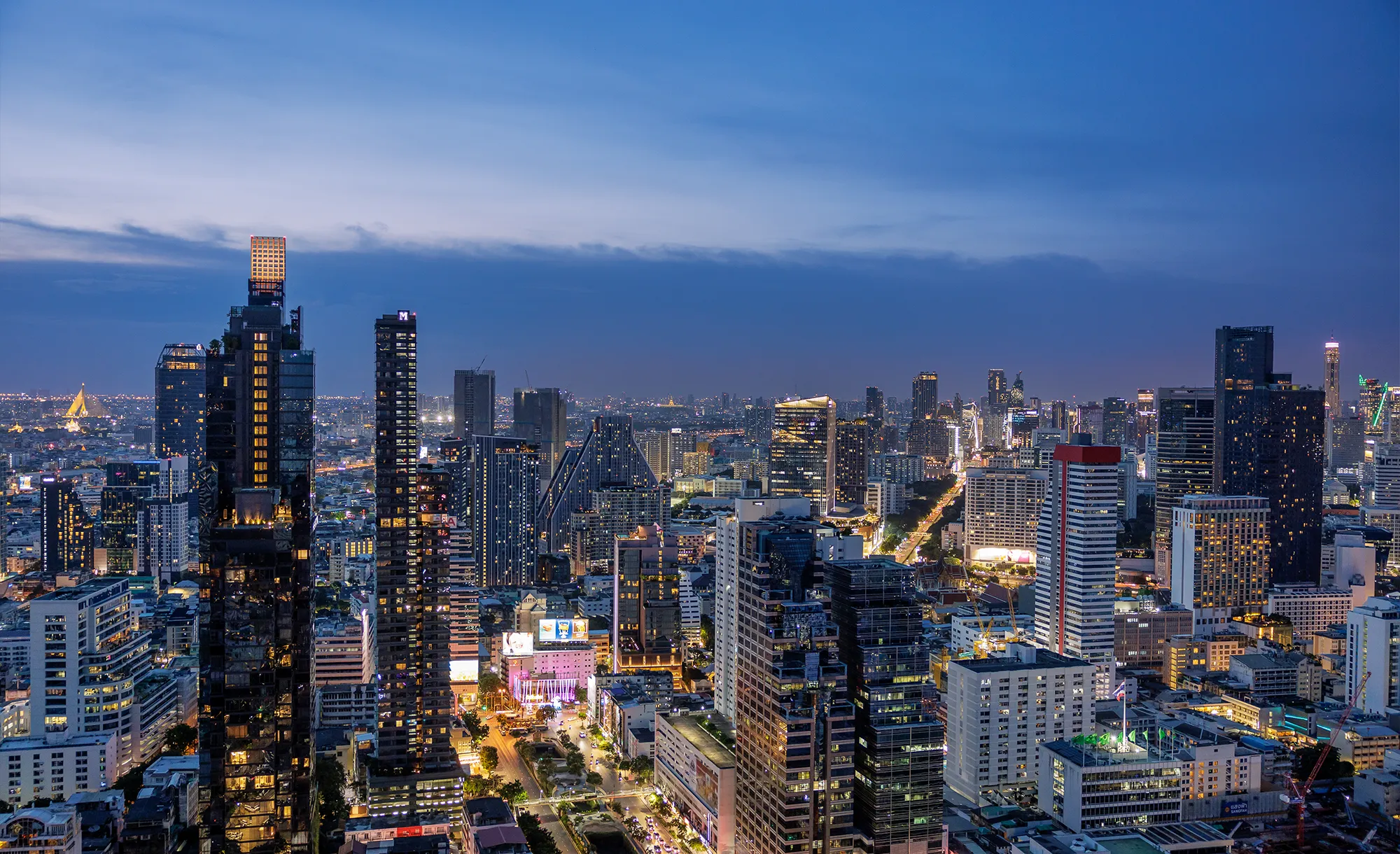 Spectacular views over Bangkok City, Lumpini Park, the Chao Phraya River and further beyond to the Gulf of Thailand.